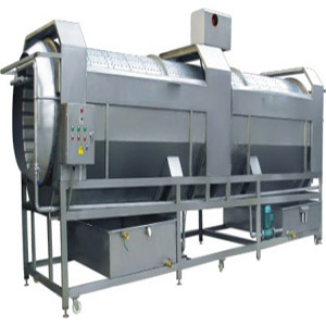 该设备主要由电机、滚筒、支架、托轮、板刷、喷淋水管、料斗、水箱、传动轴、电机架、电气控制开关等零部件组成。该机采用毛刷模仿人工搓洗模原理进行设计制作,在转动中能够有效清除果蔬表面的污渍、灰尘和农残等。